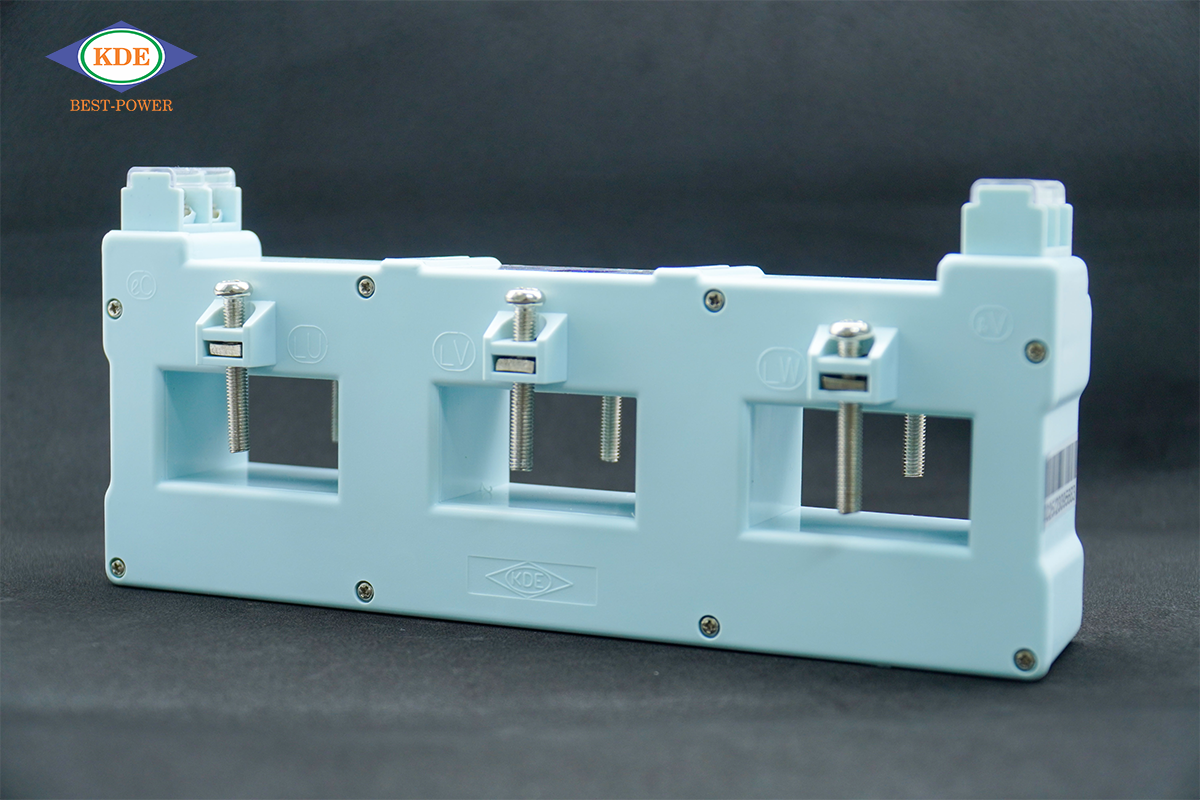 Thiết bị trong ảnh là biến dòng đo lường 3 pha KDE83 (KDE83 3P current transformer), còn được gọi là biến dòng khối 3 pha KDE.