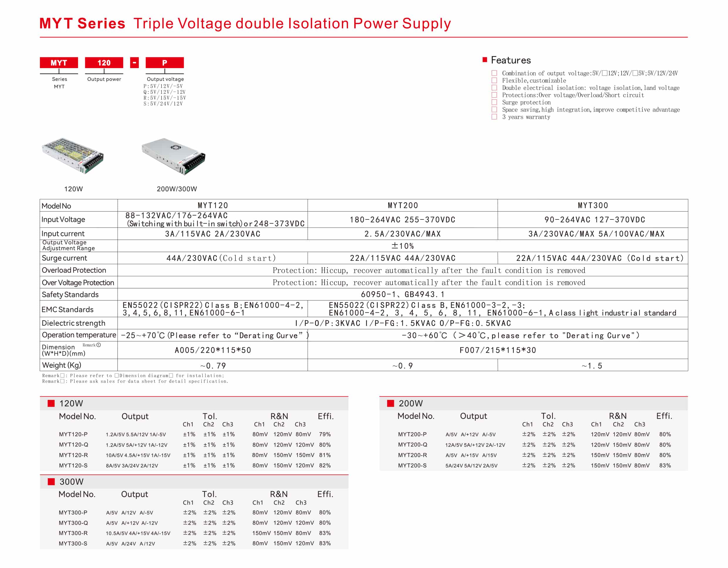 • Tổ hợp điện áp đầu ra: 5V/±12V;12V/±5V;5V/12V/24V