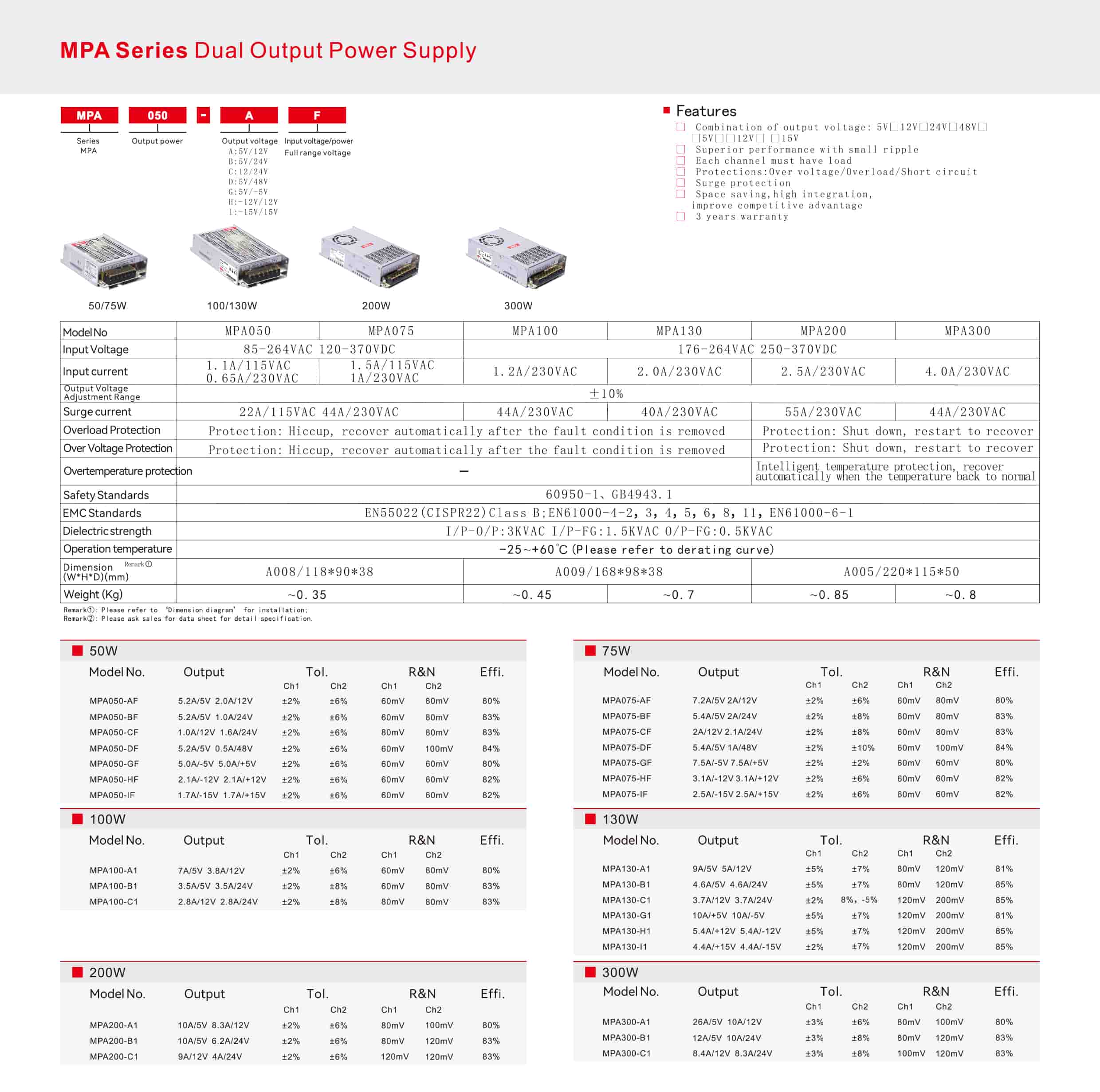 • Kết hợp điện áp đầu ra: 5V、12V、24V、48V、±5V、±12V、 ±15V