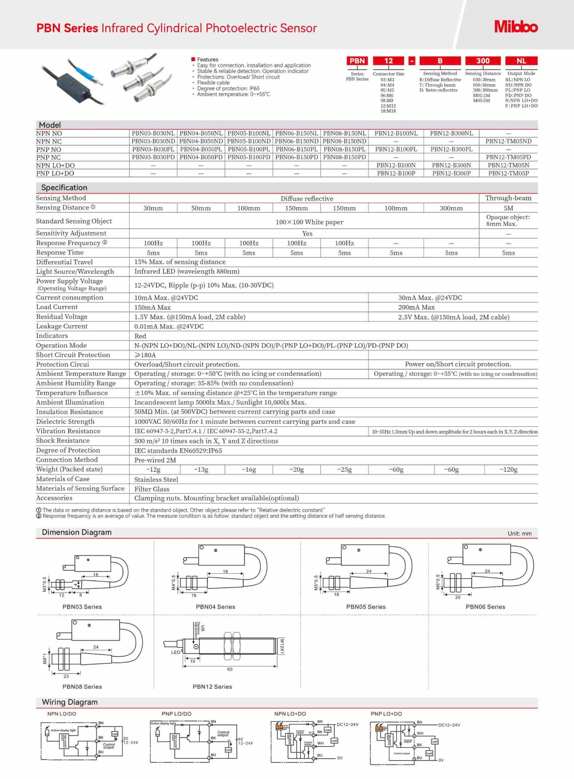 Cảm biến quang điện hình trụ hồng ngoại dòng PBN- MIBBO