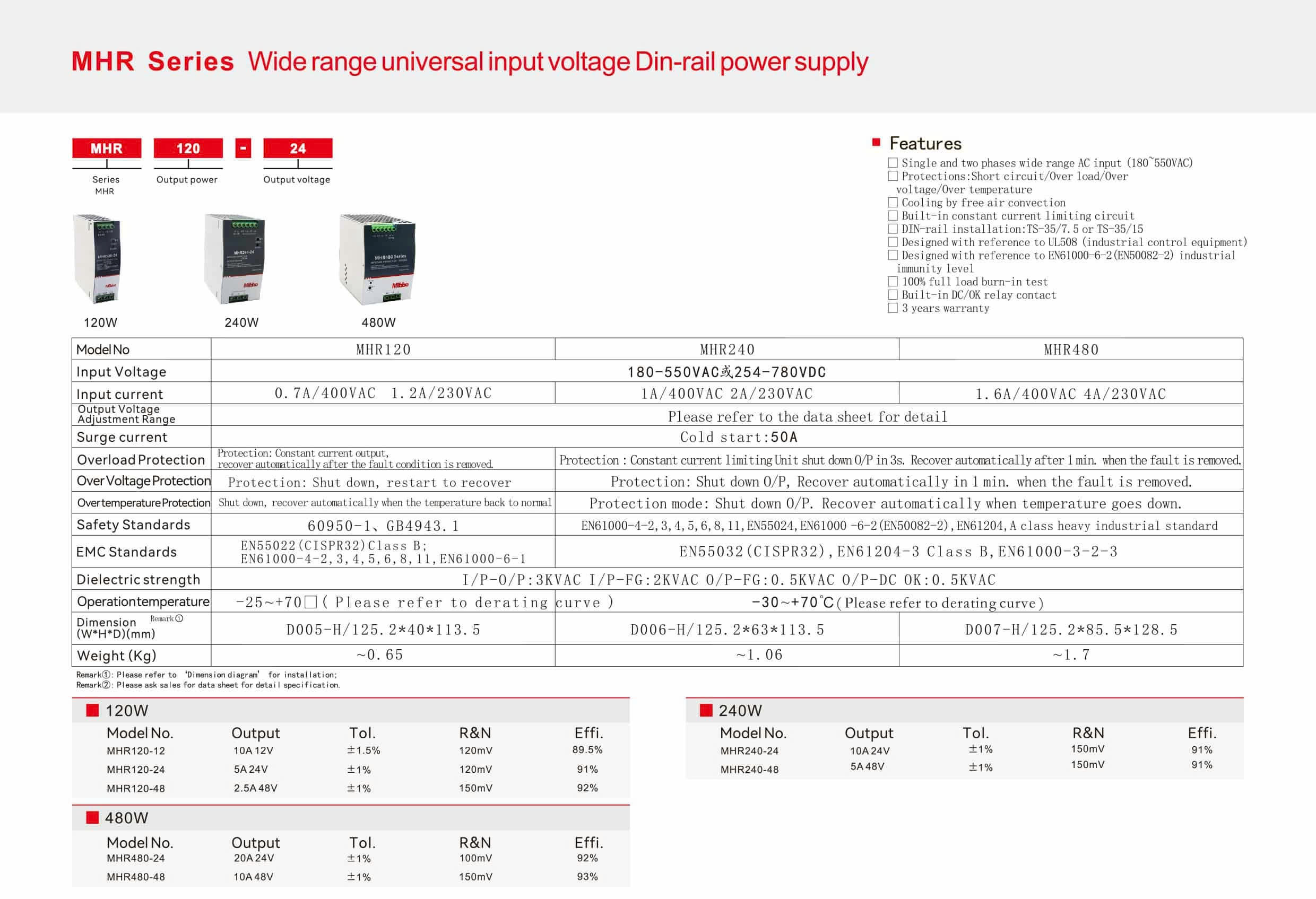 • Đầu vào AC phạm vi rộng một pha và hai pha (180~550VAC)