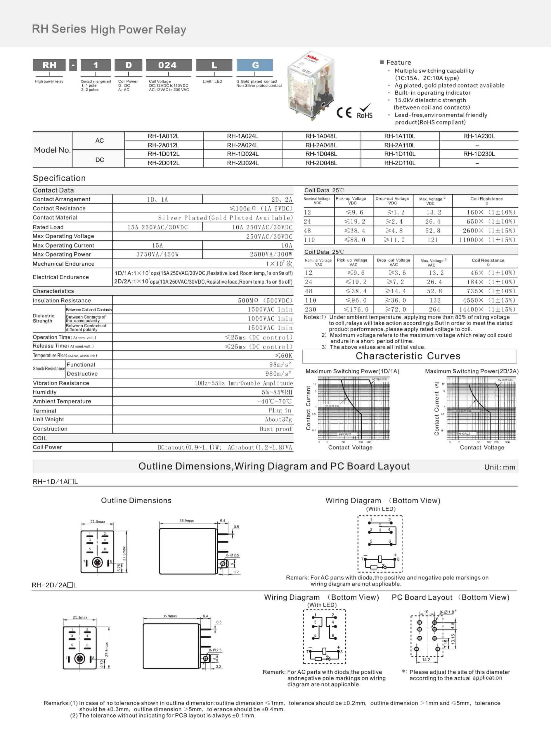 • Độ bền điện môi 15,0kV (giữa cuộn dây và tiếp điểm)